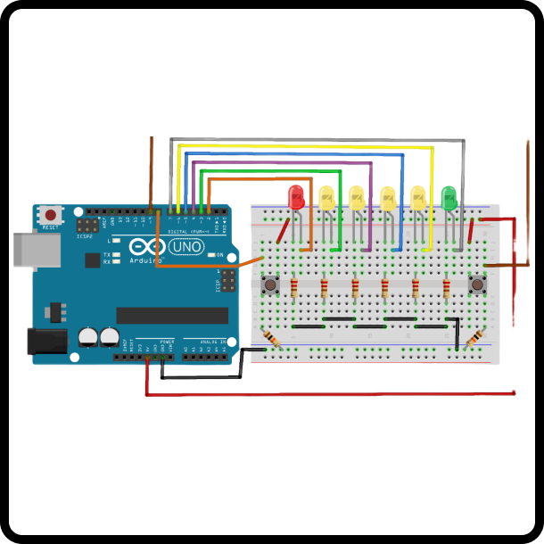Nesse projeto iremos praticar um pouco mais sobre os conceitos apresentados em relação ao uso de botões e o acionamento de cargas em sequência.