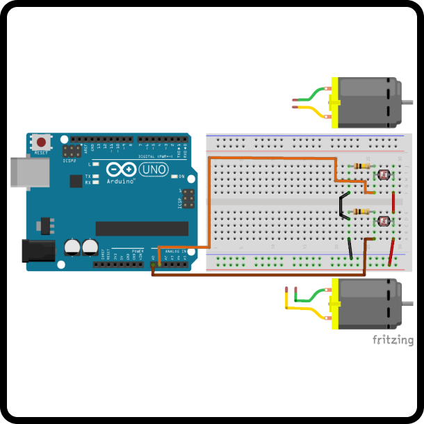 O principal objetivo desse projeto, é mostrar ao aluno como usar mais de um sensor analógico em diferentes portas de entrada analógica e fazê-los controlar dois motores de forma independente.